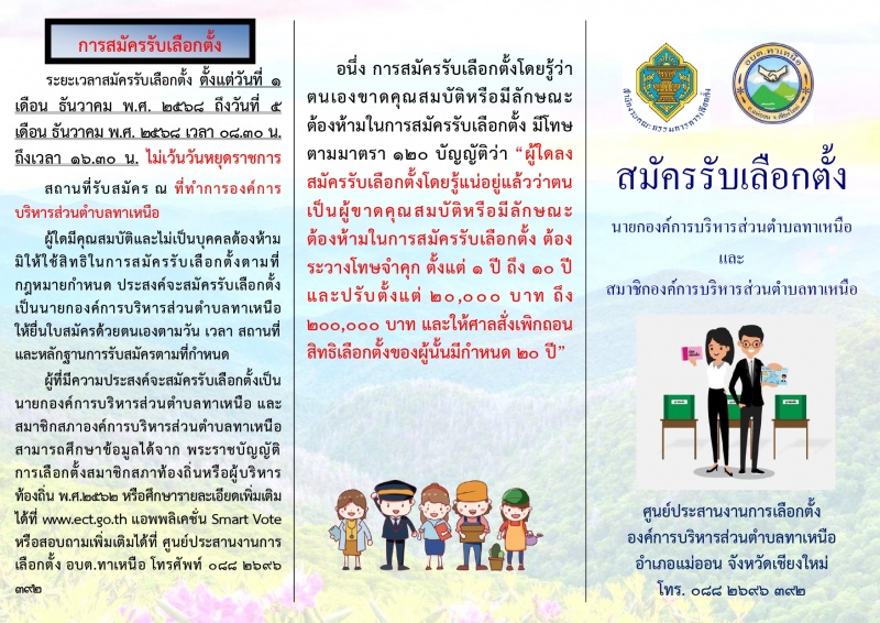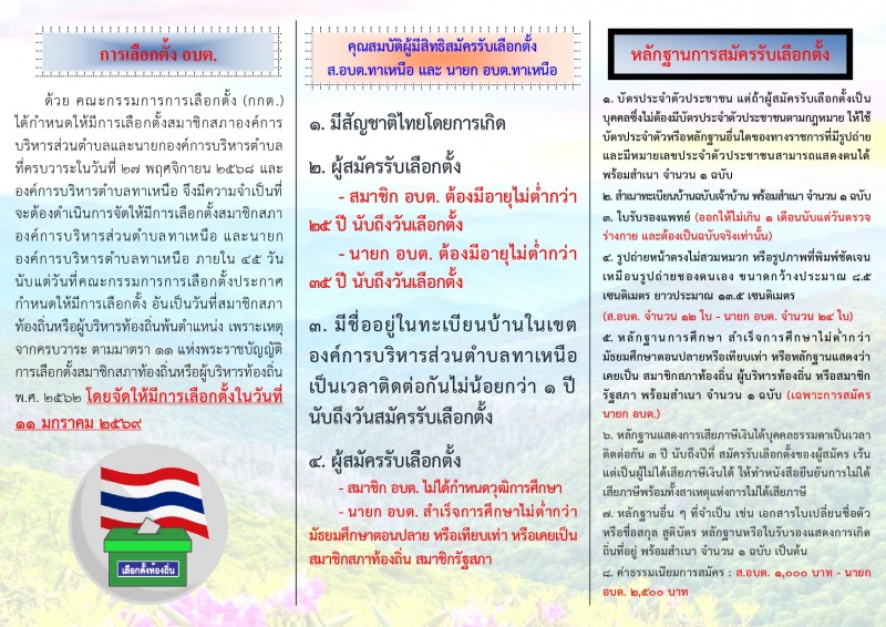 ประชาสัมพันธ์สมัครรับเลือกตั้ง นายกองค์การบริหารส่วนตำบลทาเหนือและสมาชิกองค์การบริหารส่วนตำบลทาเหนือ