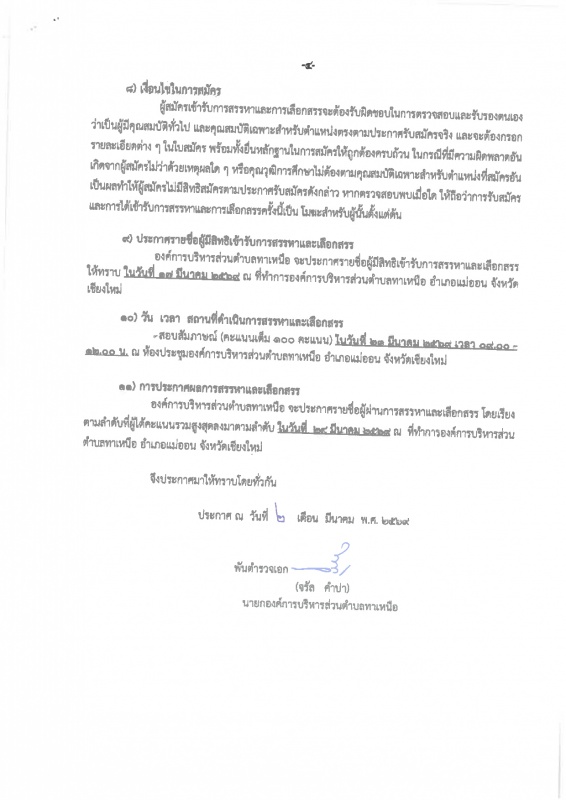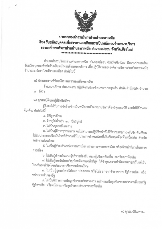 ประชาสัมพันธ์ การรับสมัครบุคคลเพื่อสรรหาและเลือกสรรเป็นพนักงานจ้างเหมาบริการ ขององค์การบริหารส่วนตำบลทาเหนือ