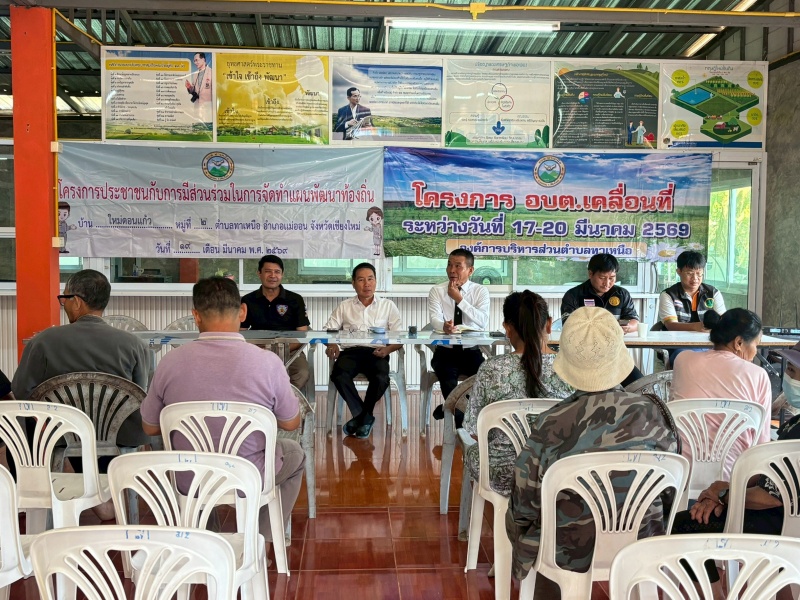 วันพฤหัสบดี ที่่ 19 มีนาคม 2569 เวลา 09.00 น. -12.00 น. องค์การบริหารส่วนตำบลทาเหนือ ได้จัดโครงการ อบต.เคลื่อนที่ ณ บ้านใหม่ดอนแก้ว หมู่ที่ 2 ตำบลทาเหนือ อำเภอแม่ออน จังหวัดเชียงใหม่ โดยมีผู้ข้าร่วมโครงการ พันตรวจเอก จรัล คำปา นายกองค์การบริหารส่วนตำบลทาเหนือพร้อมทีมบริหาร ,ปศุสัตว์อำเภอแม่ออน , กรมส่งเสริมการเรียนรู้ (สกร.),โครงการหลวงแม่ทาเหนือ ,สวนป่าหลวงสันกำแพง,สำนักงานเกษตรอำเภอแม่ออน ร่วมพบปะพูดคุยแลกเปลี่ยนปัญหาที่เกิดขึ้นในชุมชน